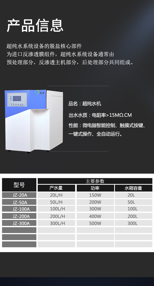 2、全自動止水,出水水速可調 3、高精度水質在線檢測系統 4、模塊化設計、遞進式全封閉制水 5、深度預除鹽,內置防結垢程序">